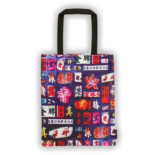 李健明繼承並數位化了其父親的已故商業夥伴李漢留下的超過 5,000 個中文書法字,並創建了“李漢港楷字體”。手提袋上印有使用此特殊字體的招牌和字體,呈現出香港獨特的文化特色。